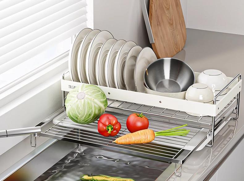 Ten tweede voorkomen geïntegreerde afvoersystemen het ophopen van water – nog een verborgen oorzaak van rommel. Gewone rekken laten vaak water op het aanrecht druppelen, waardoor een aparte lekbak nodig is, wat de rommel nog groter maakt. Ruimtebesparende modellen hebben doorgaans ingebouwde, schuine bakken die het water rechtstreeks in de gootsteen leiden, of verwijderbare lekbakken die netjes onder het rek passen (zonder buiten de voetafdruk uit te steken). Dit elimineert de noodzaak voor extra accessoires en houdt watergerelateerde rommel binnen de perken.